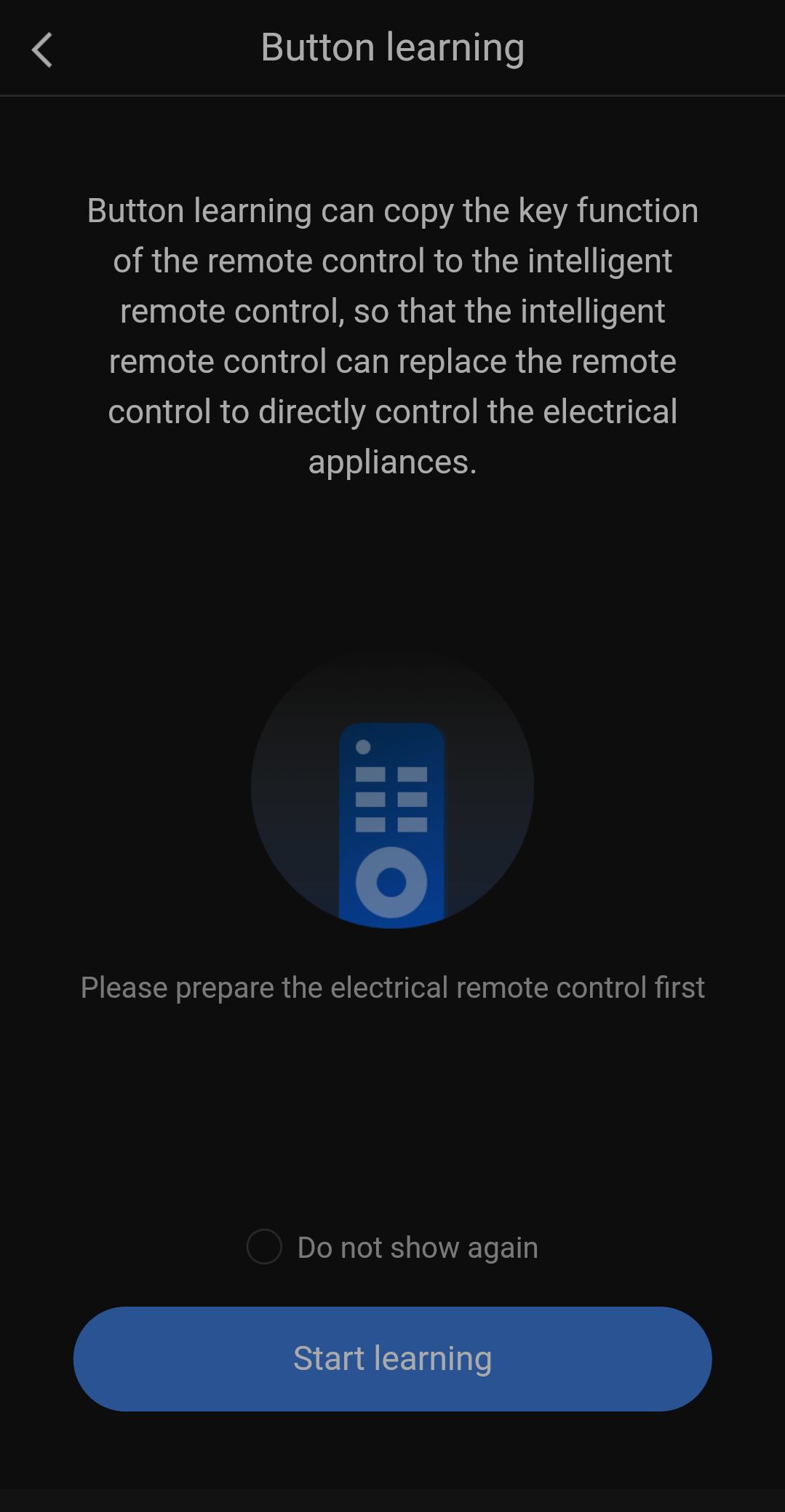 Dacă nu găsiți marca în această listă, apăsați pe ”Can’t find my brand, learn the remote right away” și vă va apărea un ecran cu o telecomandă cu butoane gri.