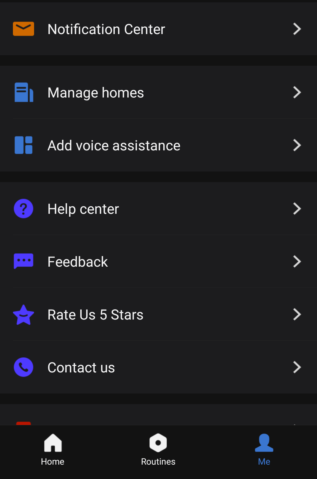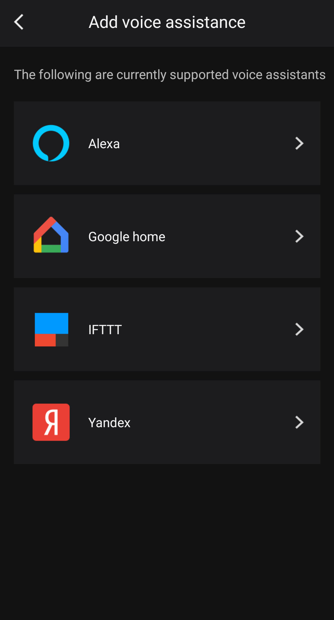 Din meniul inițial al aplicației apăsați pe ”Me” din colțul dreapta jos, iar apoi ”Add voice assistance”, selectați serviciul dorit și confirmați că doriți să conectați conturile.